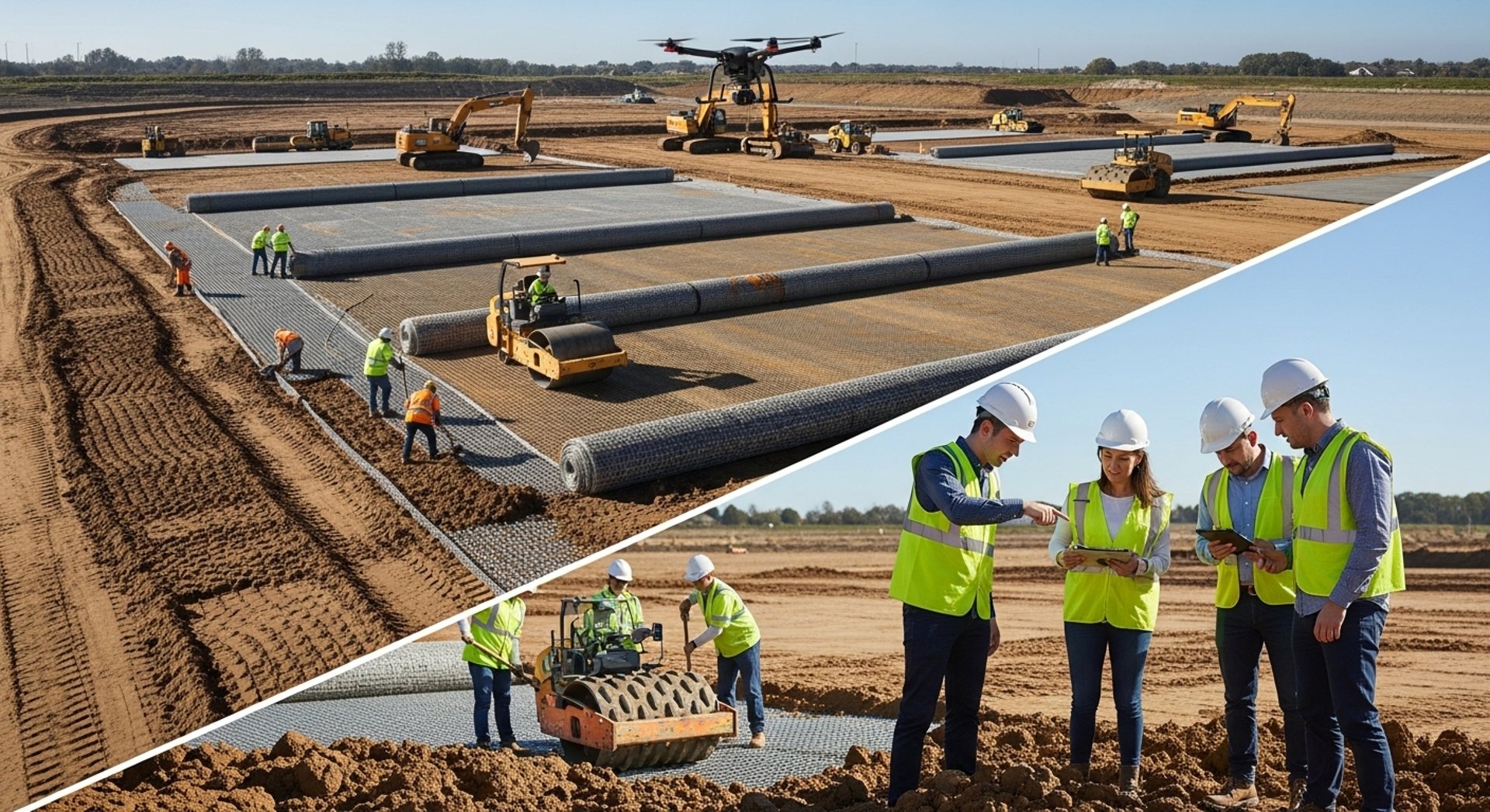 Tim teknisi kami memiliki pengalaman lebih dari 15 tahun dalam pekerjaan tanah dan pemasangan geosintetik.
